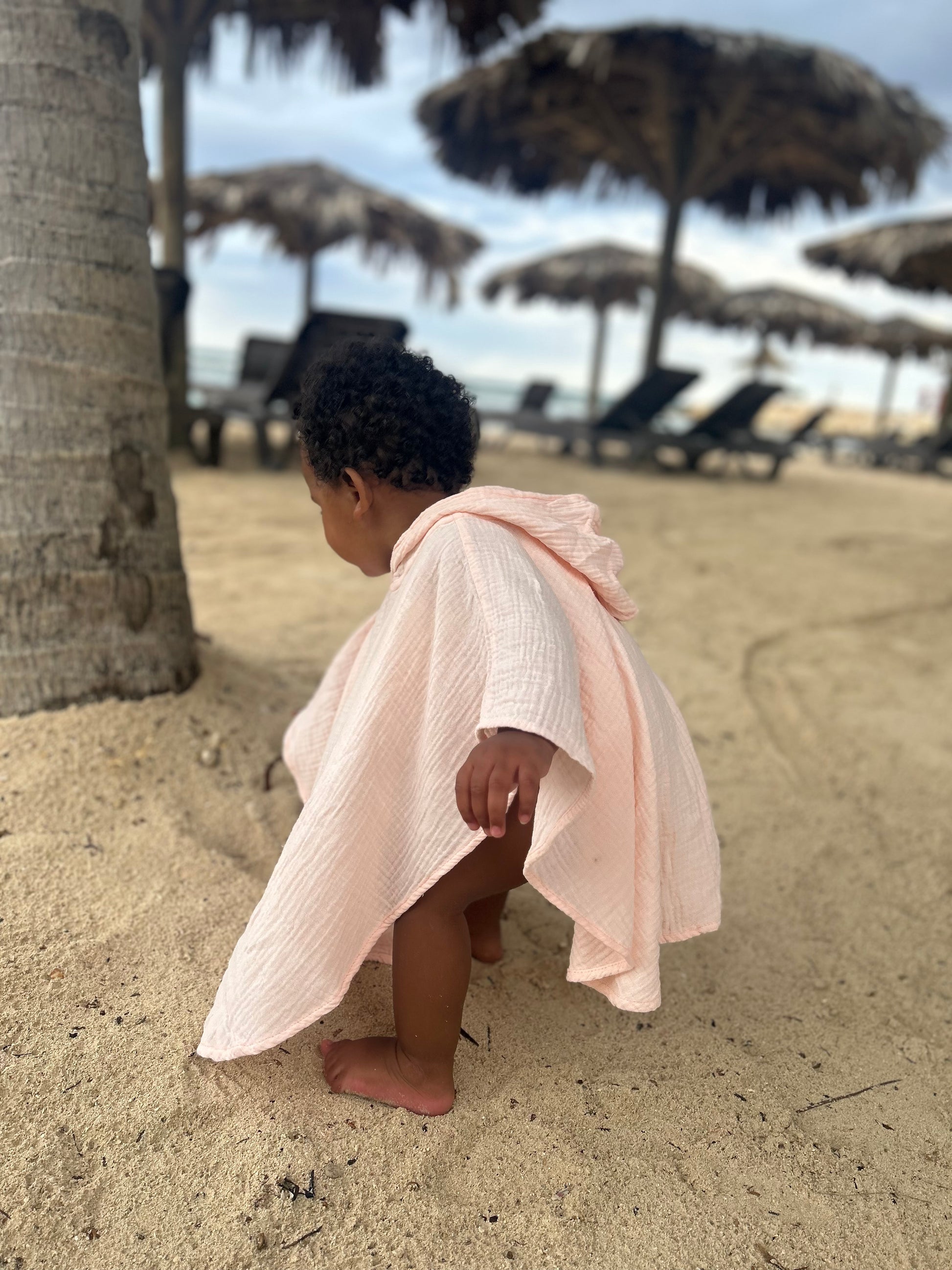 Our Baby Pink muslin poncho is the summer essential your child will use year after year.